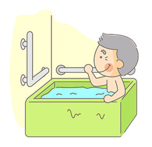 浴槽から上がる時はノンビリと浴槽のヘリに手を置き、手すりがあれば手すりを使いゆっくり立ち上がりましょう。