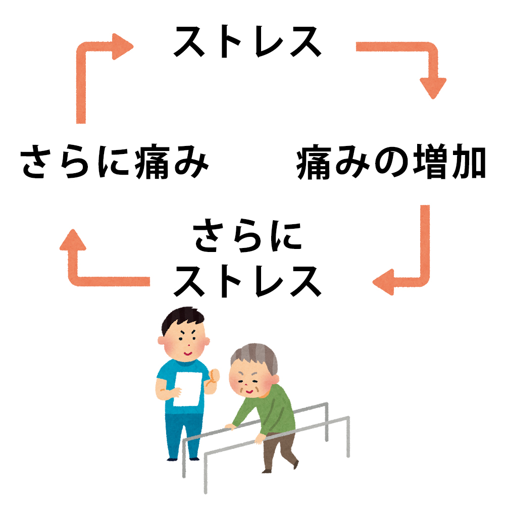 本来は、そんなに痛いはずはないのだけれど「ストレスが痛みを増幅」させています。